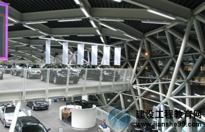 建筑設(shè)計師要運用汽車的設(shè)計元素就必須了解汽車的進化過程。30年代,汽車都是在地盤上的傳統(tǒng)式樣,40年代50年代開始演變成單體橫造結(jié)構(gòu),變成一個有機整體,F(xiàn)在建筑設(shè)計師們也將這個建筑變成“單體橫造”式結(jié)構(gòu),將兩個建筑變成一個連貫自成的結(jié)構(gòu)性整體。事實證明這一設(shè)計相當(dāng)成功,如同汽車車身一樣具有強烈的三維視覺效果。