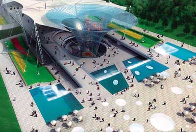 演藝中心的造型呈飛碟狀,在不同角度與不同時間會呈現(xiàn)出不同景觀。中心總建筑面積12萬平方米、24小時持續(xù)運營、360°多功能場館、每年250場演出、音樂俱樂部、電影俱樂部、文化娛樂集聚區(qū),2010年的世博演藝中心無疑將成為上海全新的時尚文化地標。