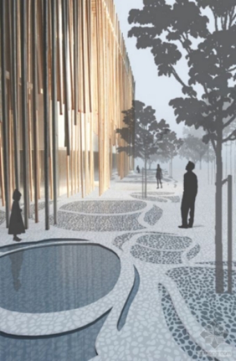 匈牙利館是從世博會舉辦方租賃下來的一個單獨的建筑物,占地面積1000平方米。從效果圖上看,匈牙利館的四周將被懸掛的木條包圍。“這些木條會動,動起來就像波浪一樣,”胡斯蒂說。