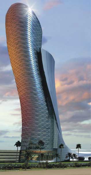 RMJM設(shè)計(jì)的阿布扎比“首都門”(Capital Gate)摩天樓傾斜度達(dá)到18度,目前正在建造。其開發(fā)商阿布扎比國(guó)家展覽公司(ADNEC)已經(jīng)提交申請(qǐng),有望成為吉尼斯紀(jì)錄中“世界最傾斜的大廈”。