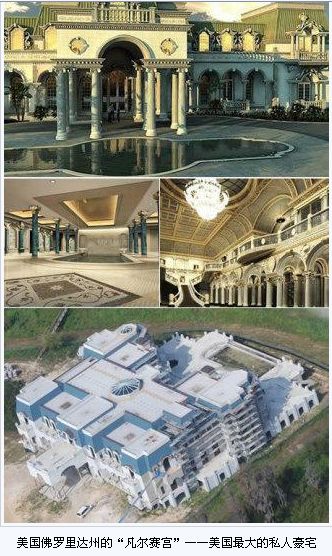 這座美國(guó)面積最大的家庭住宅坐落在佛羅里達(dá)州奧蘭多市32公里外的溫德米爾鎮(zhèn),于3年前開(kāi)始動(dòng)工,至今剛完成了外部結(jié)構(gòu)工程,內(nèi)部還未裝修。