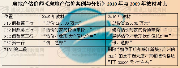 房地產(chǎn)估價(jià)2010年與2009年《考試教材》對(duì)比表