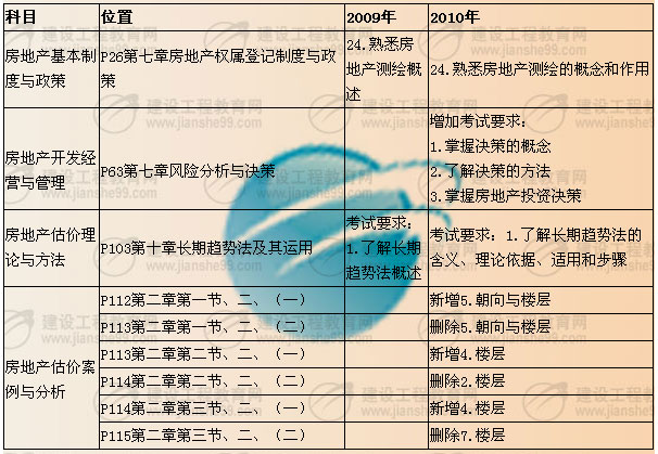 房地產(chǎn)估價2010年與2009年《考試大綱》對比表