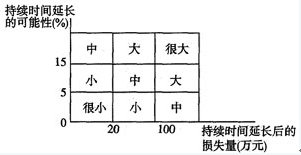 場景(二十五)某工程,施工單位向項目監(jiān)理機(jī)構(gòu)提交了項目施工總進(jìn)度計劃和各分部工程的施工進(jìn)度計劃。項目監(jiān)理機(jī)構(gòu)建立了各分部工程的持續(xù)時間延長的風(fēng)險等級劃分圖和風(fēng)險分析表,要求施工單位對風(fēng)險等級在“大”和“很大”范圍內(nèi)的分部工程均要制定相應(yīng)的風(fēng)險預(yù)防措施。