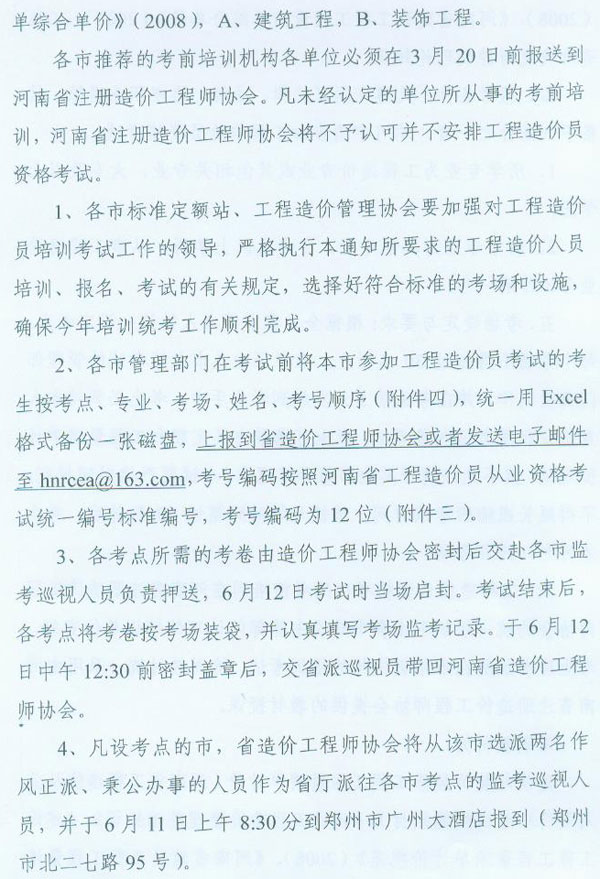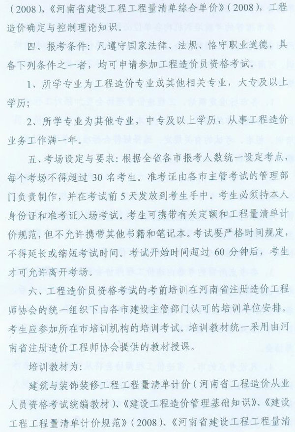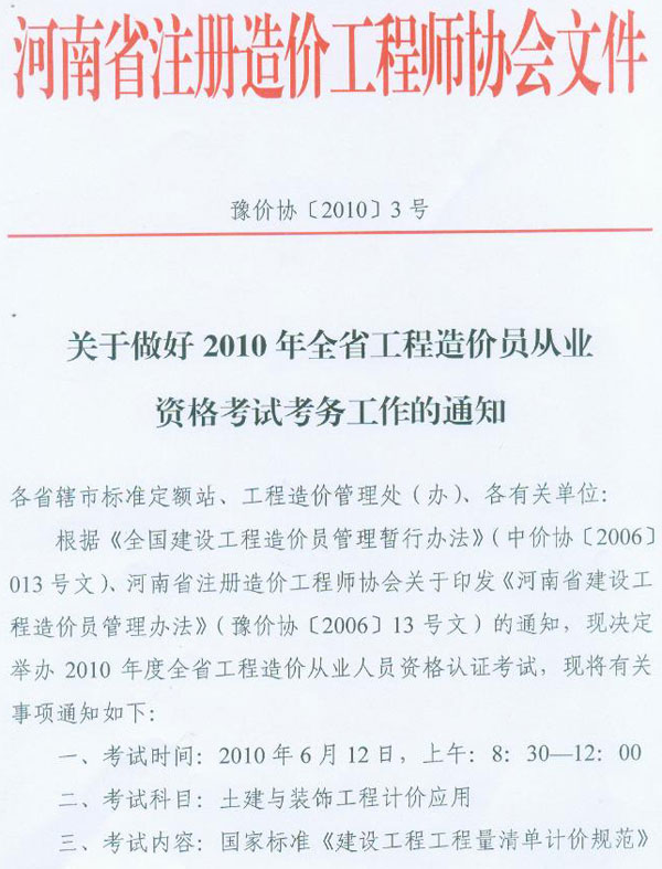 河南省2010年造價(jià)員考試時(shí)間為6月12日