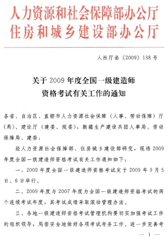 經(jīng)人力資源社會保障部、住房城鄉(xiāng)建設(shè)部研究,現(xiàn)將2009年度全國一級建造師資格考試有關(guān)工作通知如下: