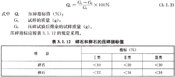 (1)強(qiáng)度。為能保證混凝土的強(qiáng)度和其他性能達(dá)到規(guī)定的要求,配制混凝土的碎石或卵石必須具有足夠的強(qiáng)度。