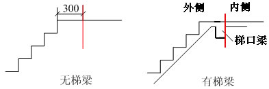 梯口梁內側邊沿的內側指的是樓地面的方向,外側指的是樓梯的方向。