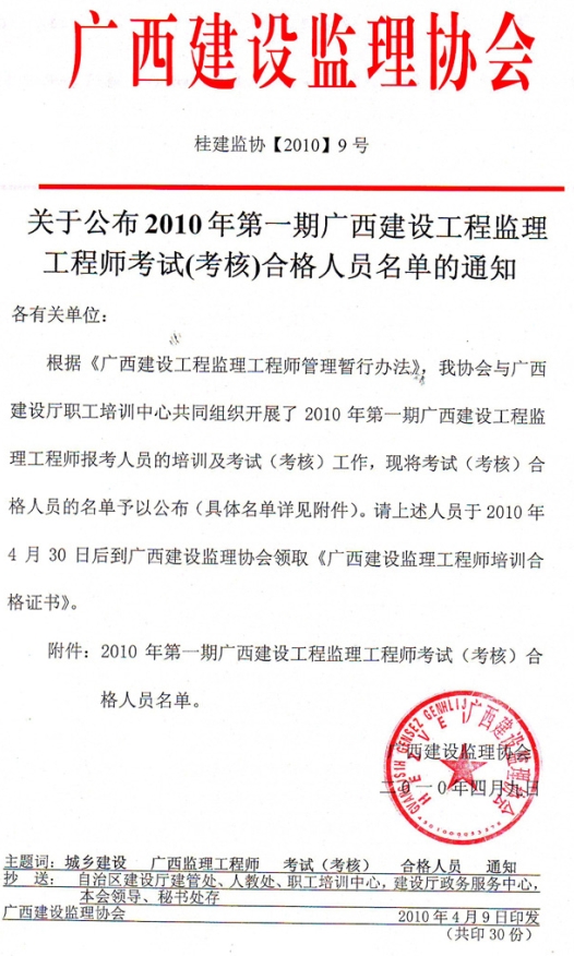 附件:2010年第一期廣西建設(shè)工程監(jiān)理工程師考試(考核)合格人員名單.xls