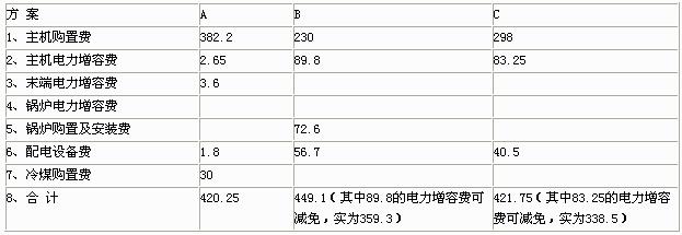 表2初投資費用比較單位:萬元