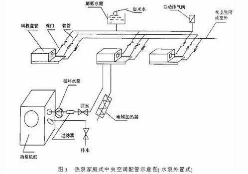 家用中央空調(diào)系統(tǒng)是一種新概念的超微型中央空調(diào)。采用家用中央空調(diào)系統(tǒng)的建筑需專用管道,所以較適合相對(duì)獨(dú)立(使用面積在90~250㎡持續(xù)增長(zhǎng)到,至大到1000㎡持續(xù)增長(zhǎng)到)的住房、別墅、辦公室、餐廳和娛樂場(chǎng)所。本設(shè)計(jì)采用空氣-水熱泵型家用中央中調(diào)系統(tǒng),其優(yōu)點(diǎn)是:
