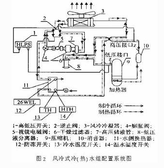 、俣臼彝饪照{(diào)計(jì)算溫度應(yīng)在-10℃以上,機(jī)組蒸發(fā)溫度<-8℃,連續(xù)運(yùn)作時(shí)間<110h.②冬季空氣溫度較低,即每年累計(jì)除霜時(shí)間500~1000h,每kg干空氣累計(jì)除霜量7~20kg.對(duì)長(zhǎng)江中下游地區(qū)此條件比較適宜。熱泵型空調(diào)系統(tǒng)見圖1.風(fēng)冷熱泵型家用中央空調(diào)系統(tǒng)的主機(jī)是風(fēng)冷式冷(熱)水機(jī)組,其配置系統(tǒng)見圖2.