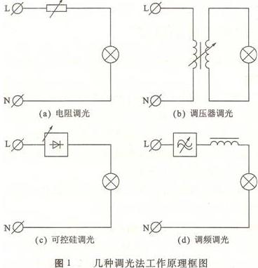 、倏勺冸娮枵{(diào)光法。利用和電光源相串聯(lián)的可變電阻,改變電阻值就可以實現(xiàn)調(diào)光。由于調(diào)光電阻方法的工作效率太低,并且在調(diào)光過程中會產(chǎn)生很大的熱量,所以目前電阻調(diào)光法已很少應用,參見圖1(a)。