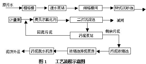 本工程利用奧地利政府貸款,引進(jìn)先進(jìn)的國外污水處理技術(shù)和設(shè)備。設(shè)計采用了奧貝爾(Orbal)氧化溝工藝,作為大型城市污水處理廠,在國內(nèi)尚屬首例,其工藝流程如圖1。