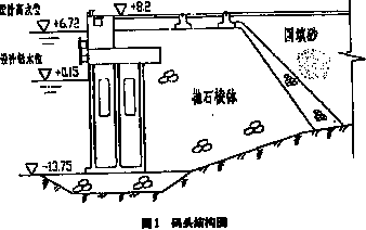 湄洲灣碼頭工程泊位長304m,陸域縱深310m,碼頭面標(biāo)高+8.20m,碼頭前沿水深-13.75m,滿足停靠3.5萬t級集裝箱船和5萬t級散貨船的要求。碼頭結(jié)構(gòu)型式為沉箱重力式結(jié)構(gòu),如圖1所示。