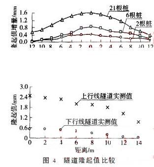 從圖4中可以明顯看出,采取上述打樁措施具有很好的效果,可以減小攪拌樁施工引起隧道的變形。