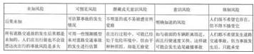 根據(jù)風(fēng)險(xiǎn)的定義,可以將道路交通安全風(fēng)險(xiǎn)理解為客觀存在的,由干各種原因(人的不安全行為、物的不安全狀態(tài)、個(gè)人因素和環(huán)境因素)導(dǎo)致人們?cè)谶M(jìn)行道路交通活動(dòng)中最終損失的不確定性。根據(jù)不確定性的程度,將道路交通安全風(fēng)險(xiǎn)分成以下幾類(見表3)。