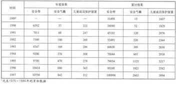 表4汽車保護(hù)系統(tǒng)的效果(挽救生命估計(jì)數(shù))