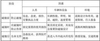 在20世紀(jì)70年代,美國人WILLIAMHADDON提出了著名的“哈頓矩陣模型”,闡述了在機(jī)動(dòng)車發(fā)生碰撞前、碰撞時(shí)和碰撞后的三個(gè)階段中互相作用的三