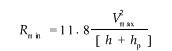 h=7.6V2max/R