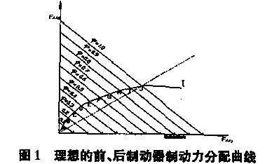 當制動器制動力足夠時,制動過程中可能出現(xiàn)三種情況:①前輪先抱死拖滑,然后后輪抱死拖滑;②后輪先抱死拖滑,然后前輪抱死拖滑;③前后輪同時抱死拖滑。情況①是較穩(wěn)定工況,但彎道行駛時,汽車失去轉(zhuǎn)向能力,情況②使后軸側(cè)滑,是不穩(wěn)定工況,情況③可以避免后軸側(cè)滑同時前轉(zhuǎn)向輪只有在最大制動強度下才使汽車失去轉(zhuǎn)向能力。