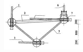 網(wǎng)架平面尺寸為64.8m×6.0~10.44m,剛度很小,若整體吊裝易變形,若現(xiàn)場(chǎng)制作工期長(zhǎng),架子用量大,堵塞交通且影響路面施工,為此我們采用分節(jié)制作,高空拼接安裝的方法,即將整個(gè)網(wǎng)架分成五節(jié),于場(chǎng)外制作,搭支撐架吊裝就位后,再組裝焊接、焊接采用單面焊接,雙面成型,確保焊接強(qiáng)度與桿件等強(qiáng),這樣既保證質(zhì)量,縮短了工期,節(jié)約了架子,又留下通道滿足了路面施工。
