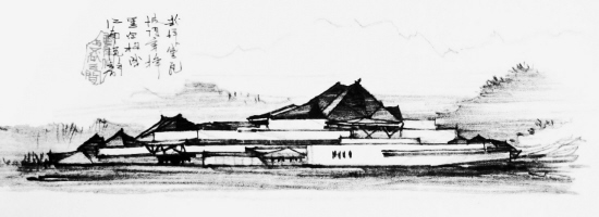 在眾多方案中最終勝出的,是程泰寧的三張充滿水墨質(zhì)感的鉛筆畫(huà)。初看上去,這好似三張充滿江南流韻的水墨作品,畫(huà)面上的建筑錯(cuò)落有致,完全融入周邊的西湖山水中。程泰寧在三張圖中分別寫(xiě)上“粉墻黛瓦,坡頂穿插,黑白構(gòu)成,江南流韻”,“依山面水,錯(cuò)落有致,雖為人造,宛如天開(kāi)”,“鋼、玻璃、石材的材質(zhì)對(duì)比,方錐與水平體塊的相互穿插,使建筑具有強(qiáng)烈的雕塑感。”