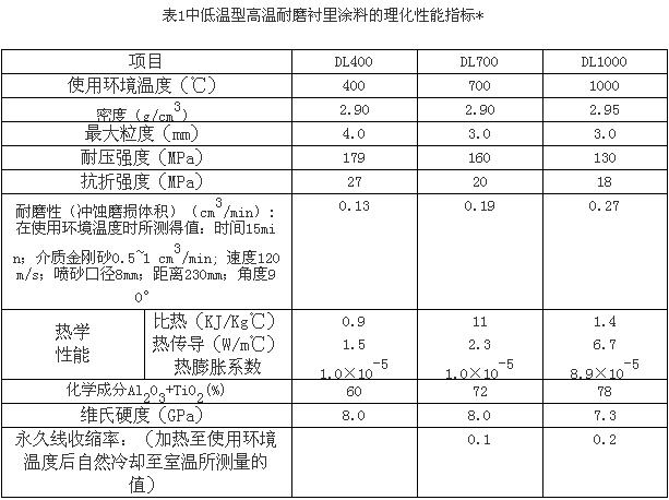 高溫耐磨襯里涂料主要有骨科和超細(xì)結(jié)合粉兩相組合,顆粒緊密堆積,因而沒(méi)有較大的宏觀缺陷,體積密度大,其常溫下強(qiáng)度可達(dá)150Mpa以上,特殊產(chǎn)品可達(dá)280Mpa以上。是普通混凝土和耐火澆筑料無(wú)法比擬的。原料主要采用離子化合物和部分人工合成共價(jià)化合物,根據(jù)固體理論,離子鍵和共價(jià)鍵屬?gòu)?qiáng)結(jié)合鍵,而結(jié)合系統(tǒng)由于采用復(fù)合強(qiáng)化措施和特殊處理,形成化學(xué)結(jié)合,所以強(qiáng)度和剛度很大,可有效抵御物料的高速?zèng)_擊力和剪切應(yīng)力。理化性能指標(biāo)見(jiàn)表1(以Valor系列產(chǎn)品為例)。