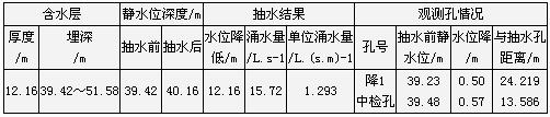 。5)安泵降水。降水孔施工結(jié)束后,安裝潛水泵試排水。之后,做兩次降深的簡易單孔穩(wěn)定流抽水試驗和多孔干擾抽水試驗。根據(jù)試驗結(jié)果,計算出泄水孔的泄水量。