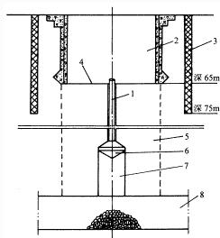 4—井筒工作面;5—未開鑿井筒;6—反井鉆機鉆頭;