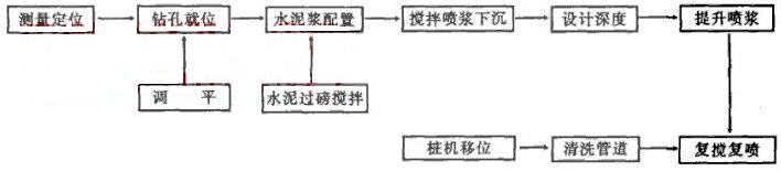 (5)復(fù)攪復(fù)噴。為了攪拌充分和提高樁身水泥土強度,應(yīng)復(fù)攪復(fù)噴有效樁的長樁身段。