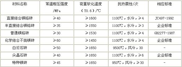 幾種耐火磚的理化性能指標(biāo)見(jiàn)下表: