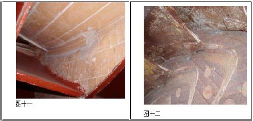 2.2水泥磨系統(tǒng)循環(huán)風(fēng)機(jī)抗磨損研究。我們先后采用了UP復(fù)合板制造葉輪,一是造價(jià)較高。二是某些關(guān)鍵地方的焊接由于材質(zhì)不同,葉片與墻板根部磨損尚不能根本解決。(圖12)耐磨焊條焊接,抗磨性好,同樣由于材質(zhì)的不同焊接出現(xiàn)裂紋,葉輪整體變形較大,用于修復(fù)舊葉輪,由于焊接應(yīng)力過(guò)大,風(fēng)機(jī)整體變形,開裂的情況時(shí)有發(fā)生。陶瓷涂料刷涂葉輪實(shí)驗(yàn)效果也不理想。陶瓷片粘結(jié)經(jīng)5年多逐步開發(fā)、研究,目前所取得的成果相對(duì)比較成熟可靠。(圖9)
