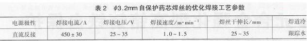 由于自保護(hù)藥芯焊絲的工藝參數(shù)適應(yīng)性小,所以試驗(yàn)中對其進(jìn)行了優(yōu)化,如表2所示。