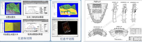 ?。?)研發(fā)基于三維地質(zhì)模型剖切快速生成標(biāo)準(zhǔn)地質(zhì)剖面圖,減少大量的圖形后處理工作量,大幅提高出圖效率。