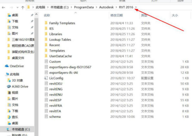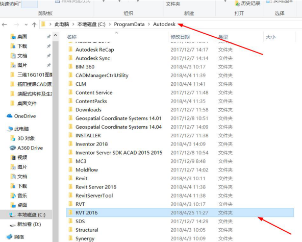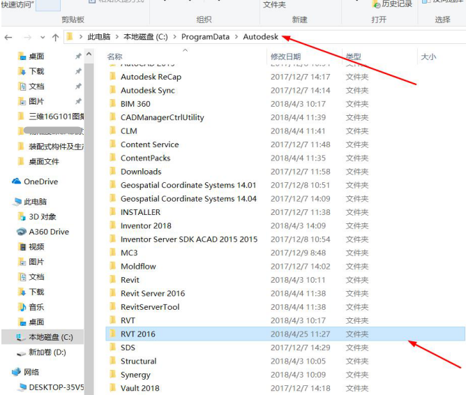 4.找到ProgramData文件夾,在其中找到RVT2016文件夾