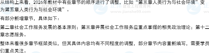 中國社會出版社2026中級社會工作者考試教材已下發(fā)!備考中級社會工作綜合能力科目的你一定想知道教材變化,網校教研老師進行了精細對比: