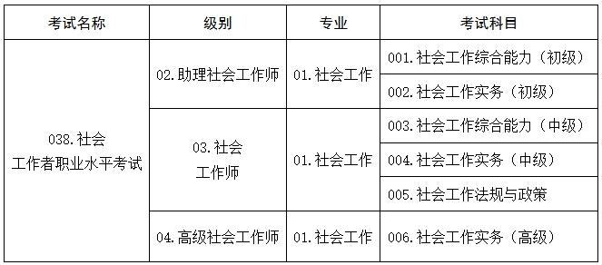 社會(huì)工作者職業(yè)水平考試代碼及名稱表
