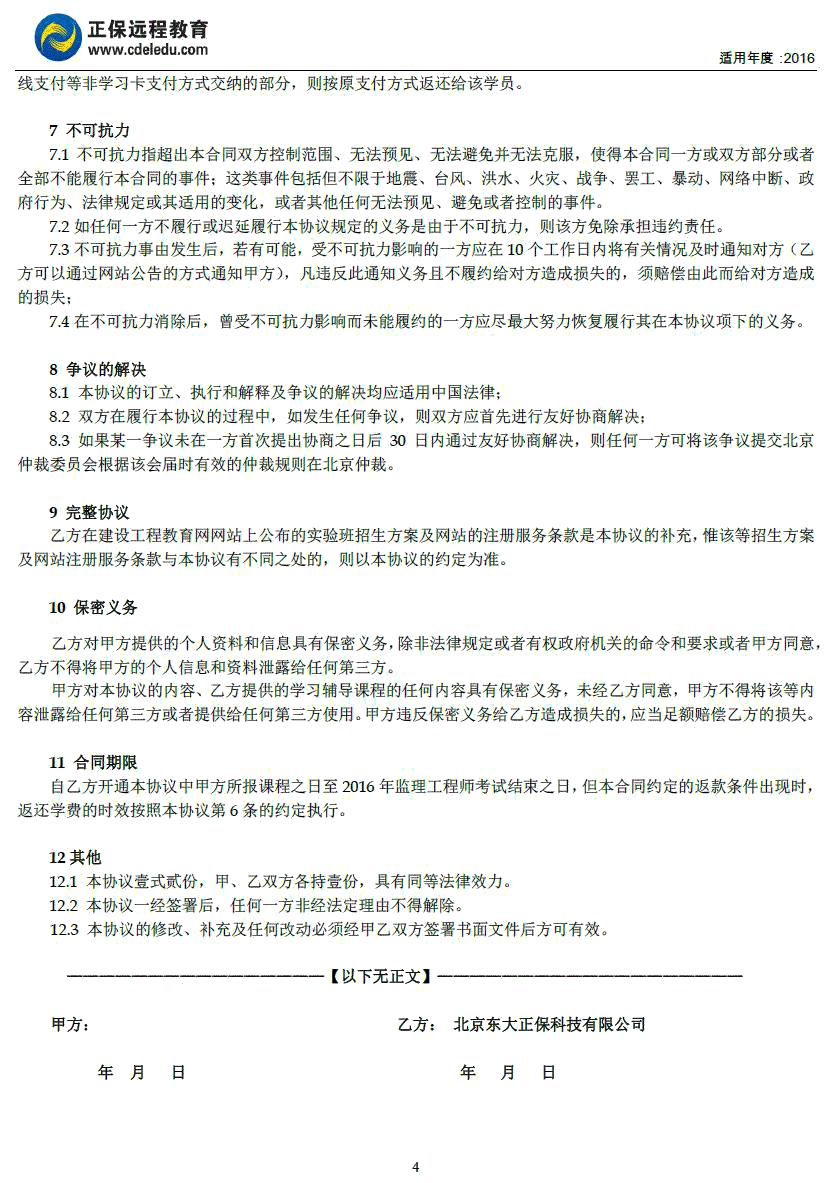 監(jiān)理工程師“實驗班”協(xié)議書