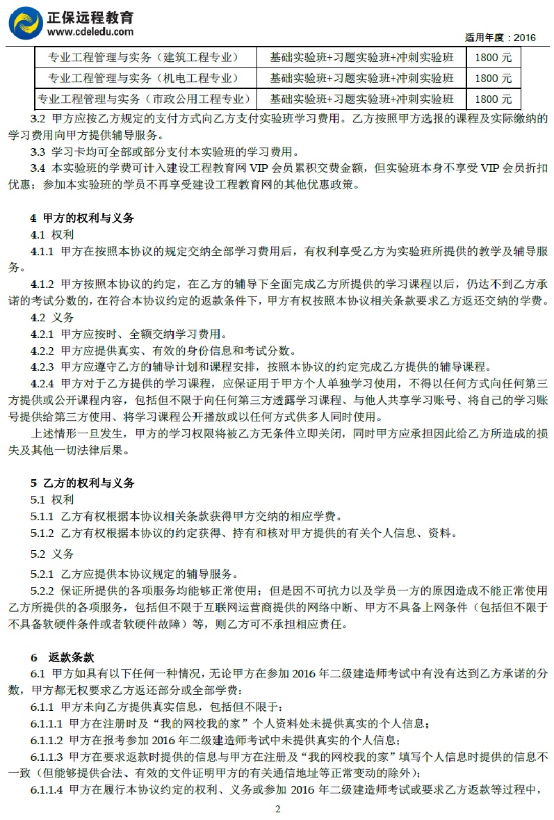 二級(jí)建造師“實(shí)驗(yàn)班”協(xié)議書