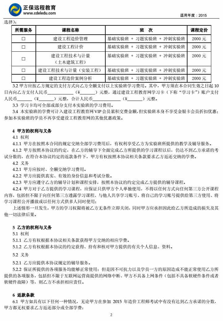 造價(jià)工程師“實(shí)驗(yàn)班”協(xié)議書