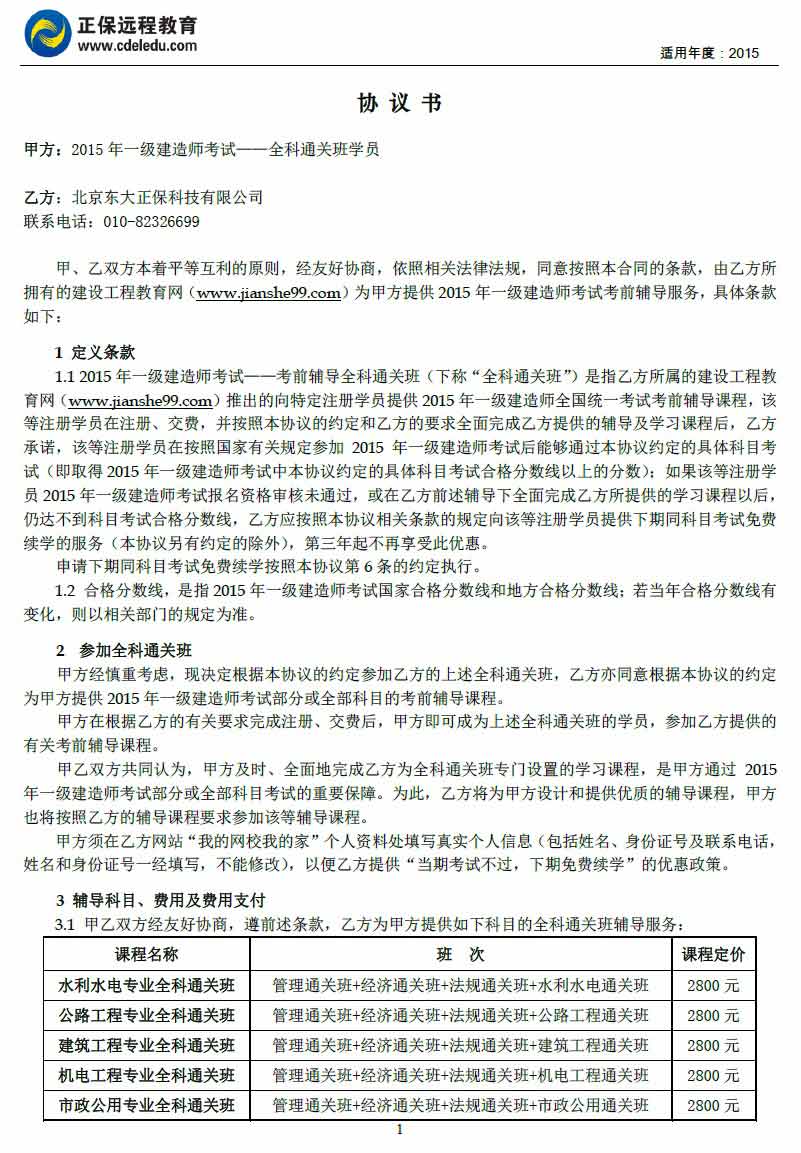 一級(jí)建造師“全科通關(guān)班”協(xié)議書