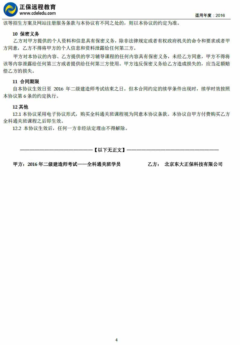 二級建造師“全科通關(guān)班”協(xié)議書