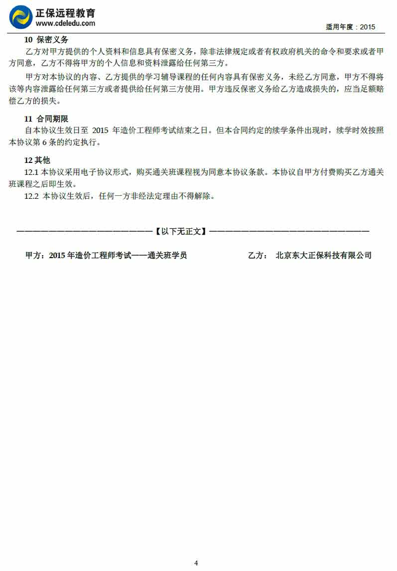 造價(jià)工程師“通關(guān)班”協(xié)議書(shū)