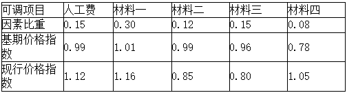 事件五:合同中約定,根據(jù)人工費(fèi)和四項(xiàng)主要材料和價(jià)格指數(shù)對總造價(jià)按調(diào)值公式法進(jìn)行調(diào)整。