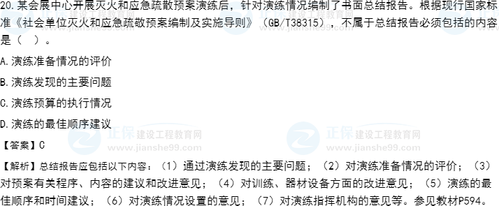 2021年一級(jí)消防工程師《消防技術(shù)綜合能力》試題答案及解析1-20