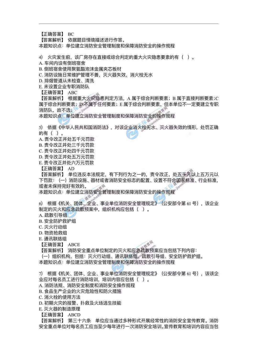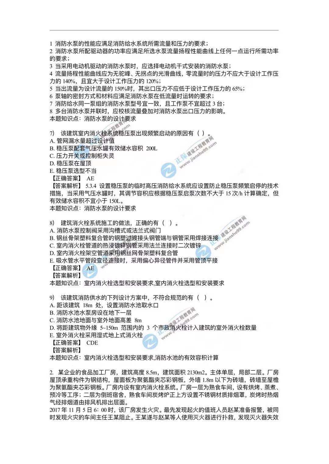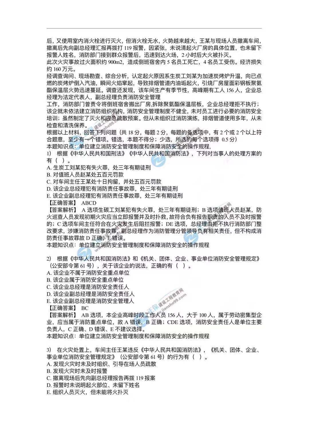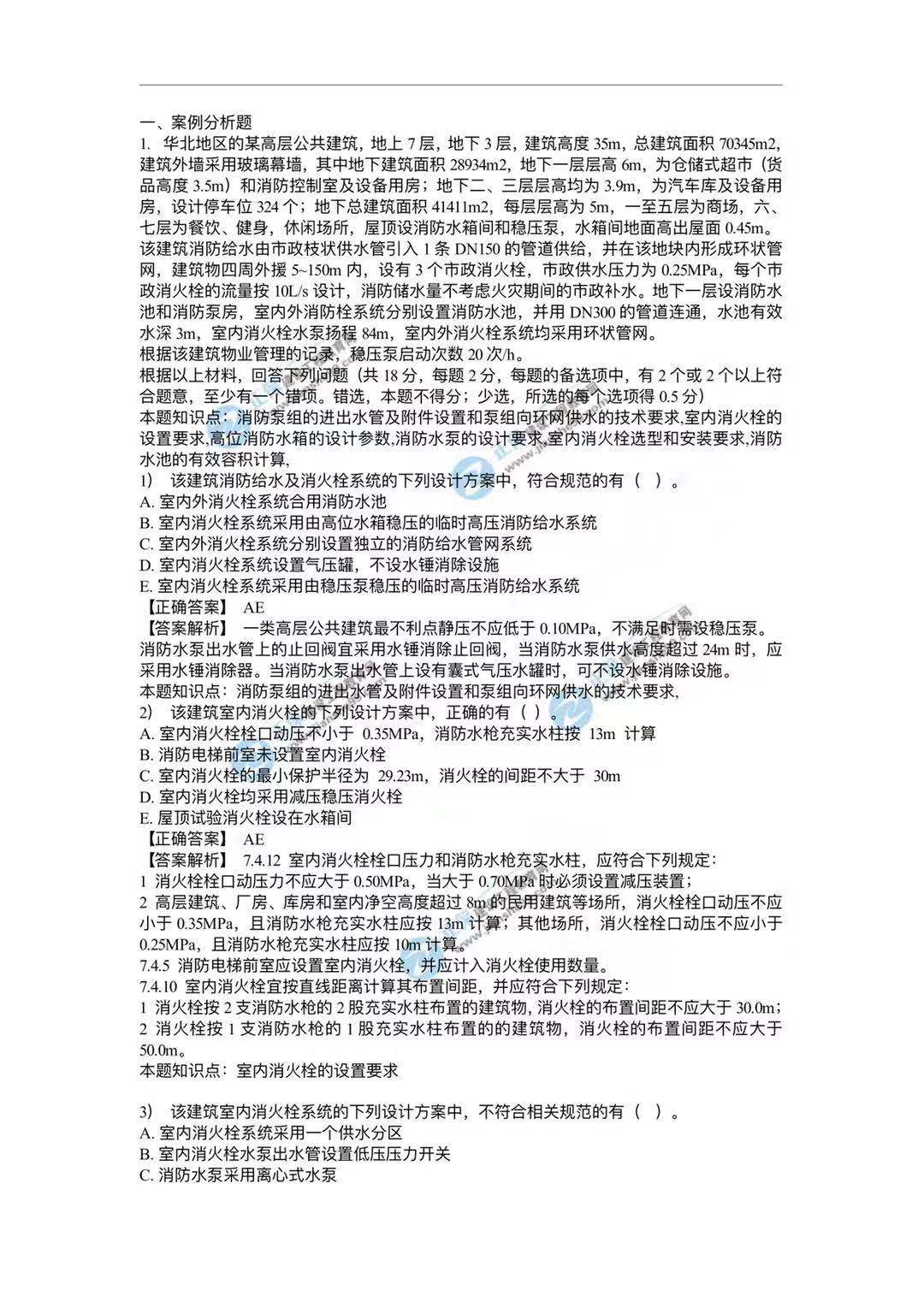 2018一級消防工程師《消防安全案例分析》試題及答案解析
