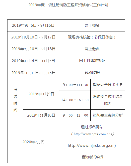 黑龍江省2019年一級消防工程師的報名考試日程安排詳情