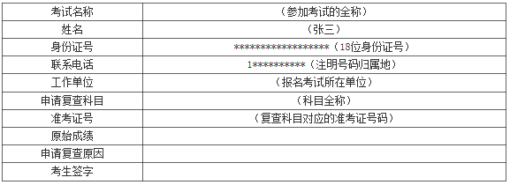 專業(yè)技術(shù)人員職業(yè)資格考試應試人員對考試成績有異議的,應在考試成績公布之日起30天內(nèi),向江西省人事考試中心提出成績復查申請(成績復查申請表附后)??荚嚦煽儚秃私Y(jié)果由江西省人事考試中心答復成績復查申請人。