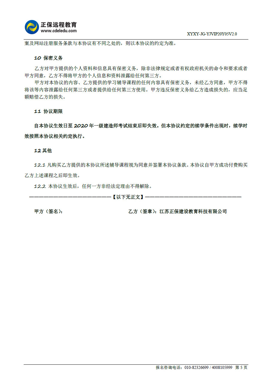 2020年一級建造師VIP簽約特訓(xùn)營(單科)協(xié)議書